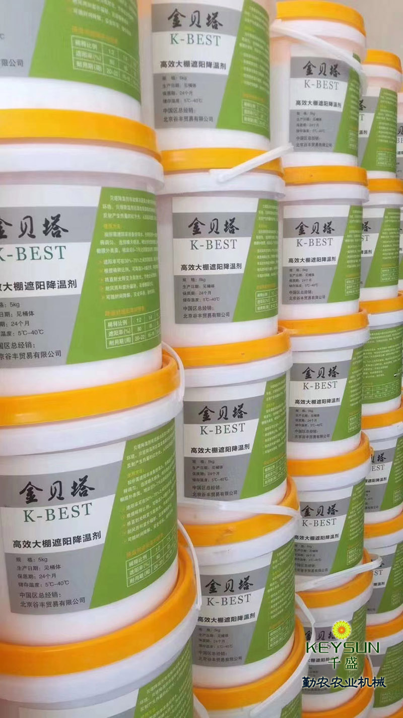 山東禹城勤農(nóng)大棚降溫劑能有效解決蔬菜大棚內(nèi)強(qiáng)光和高溫問題,為作物提供理想的溫光生長環(huán)境。降溫劑在溫室表面形成白色涂層,將太陽直射光轉(zhuǎn)變?yōu)樯⑸涔猓⒂行Х瓷洚a(chǎn)生熱量的紅外光,從而起到遮陽、降溫、防止棚膜老化